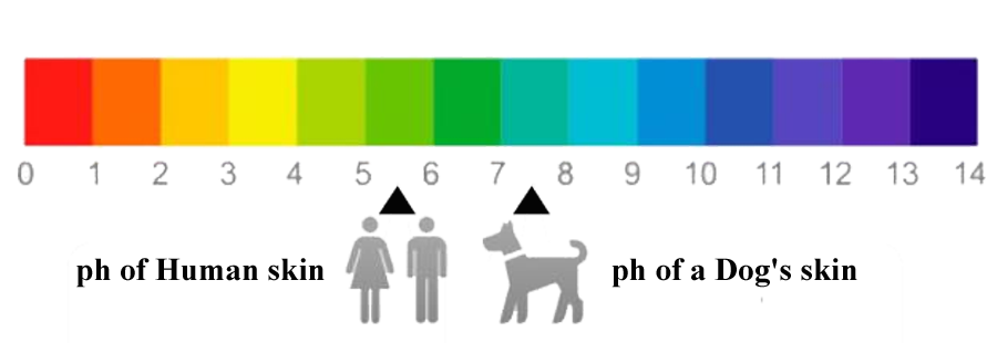 While human skin is slightly acidic, a dog’s skin is closer to neutral.